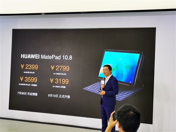价格方面,6+64GB WLAN 2399元,+128GB WLAN 2799元,6+128GB全网通3199元,6+256GB WLAN(含键盘)3599元,今晚开约,8月13日正式发售。